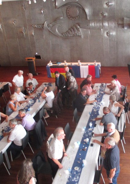 Gegen 17 Uhr traf man sich im festlich geschmücktem Ordensaal. zu einem gemeinsamen Essen, dass anschließend in ein harmonisches Beisammensein überging. Axel Sahner überreichte dem Präsidenten der A.G.S.M. France Est, Ange Marteleur eine Collage.