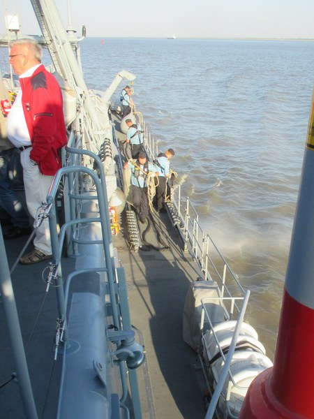 Wie schon 2013 ist es uns in diesem Jahr endlich wieder einmal, mit Tatkräftiger Unterstützung von Michael Scheer, gelungen, für zehn Kameraden aus dem Freundes-kreis- 2.Schnellbootgeschwader e.V. eine Mitfahr-gelegenheit auf einer militärischen, seegehenden Einheit zu organisieren. 2013 hatten acht Kameraden das Vergnügen, die Aus- und Einlaufparade auf der Fregatte SACHSEN zu erleben.